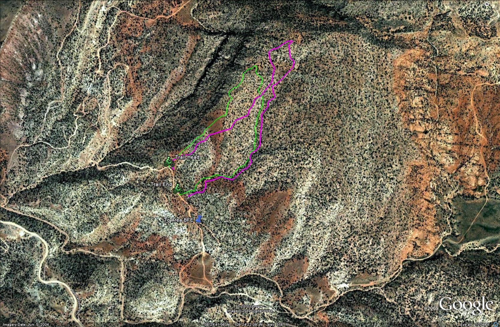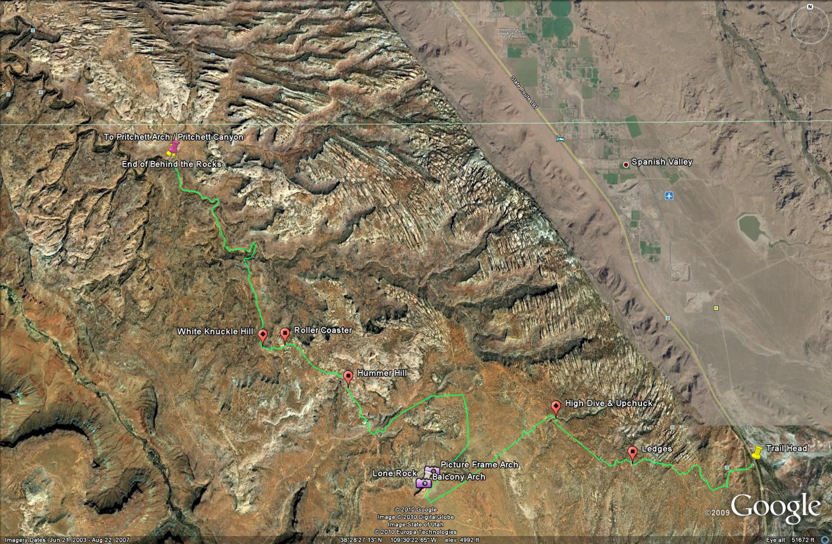Description: Behind The Rock is a very long, and difficult trail. We have never done the trail, so I can't tell you how difficult or bypasses, but it is is rated 4+ in many books (out of 5). You can connect with Pritchett Canyon and Kane Creek Rim trail...not the same as Kane Creek Canyon. The KMZ does not contain our tracks. |